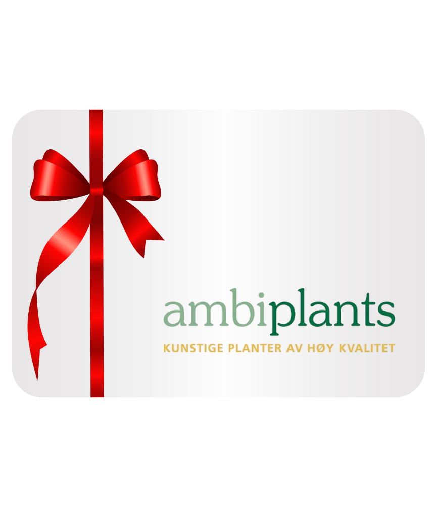 Usikker på hvilket kunstig tre, plante eller blomst som passer best? Med et gavekort fra ambiplants.no kan mottakeren selv velge blant vårt brede utvalg av naturtro kunstige planter. Perfekt som gave til enhver anledning – enkelt, fleksibelt og alltid en suksess.