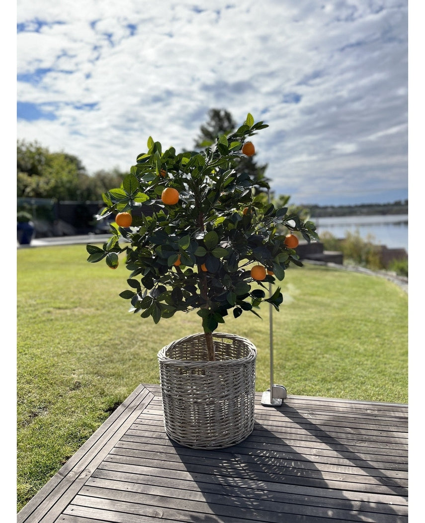 En fott og fin favoritt! Vårt kunstige appelsintre er virkelig en blikkfanger, og dette med god grunn. Den har en ekte stamme, i toppen springer det ut nøye etterlignede appelsintreblader med fine detaljer, og prikken over i'en er de flotte oransje appelsinene som henger i fin harmoni som et friskt pust. Perfekt for deg som ønsker noe grønt og friskt. Kanskje du har en flott sommerbu, eller en overbygd terasse som ville hatt godt av noe eviggrønt og fint, da er dette valget for deg, denne flotte falske planten vil være et flott tilskudd der hvor venner...