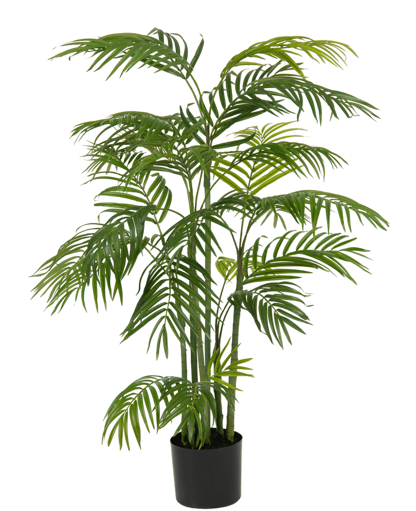 En nydelig kunstig variant av Areka palmen som her er 120cm høy med hele 560 blader. Flotte naturlige grønne palmeblader. En naturlig flott kunstig plante som passer like godt hjemme som på hytten eller kontoret.