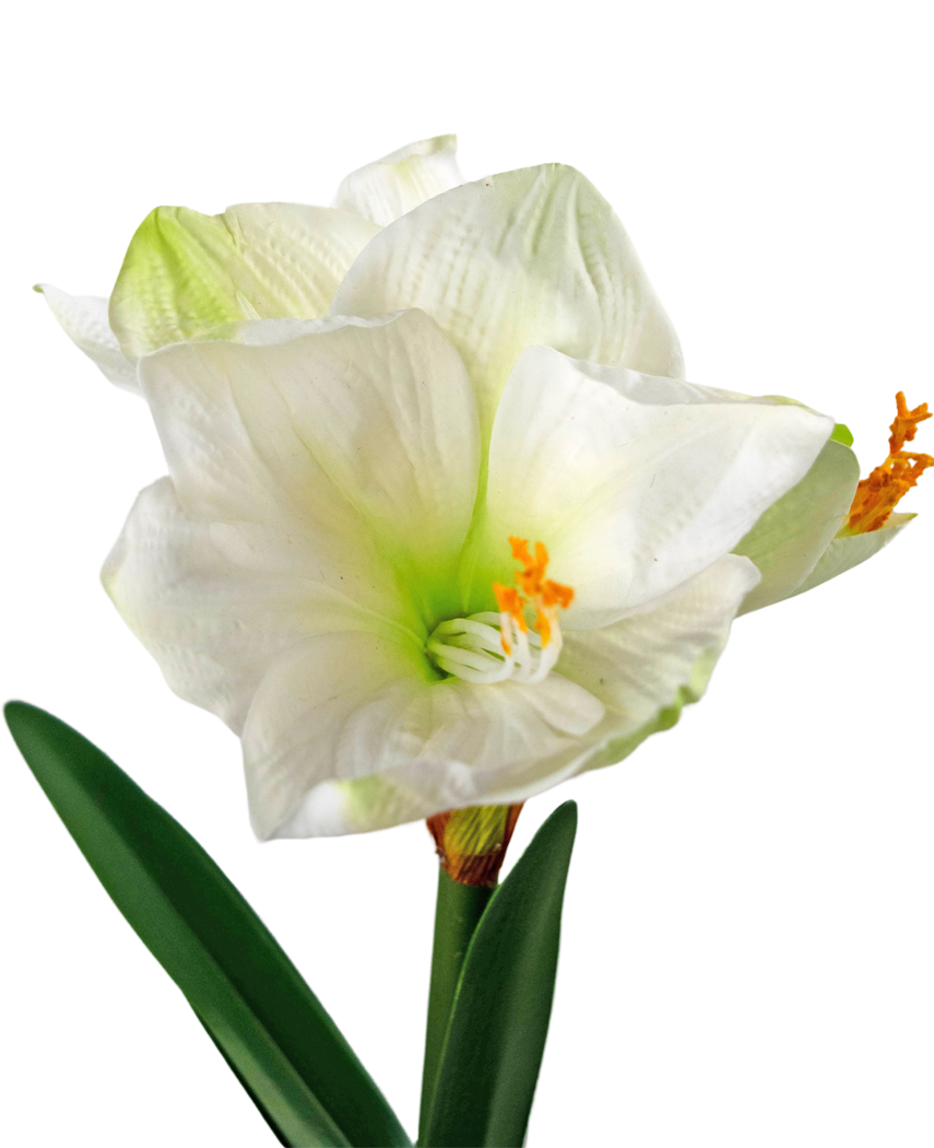 Oppdag elegansen og skjønnheten til vår kunstige Amaryllis i potte. Med Real Touch-teknologi er denne blomsten laget for å se og føles som en ekte plante, perfekt for å skape et sofistikert uttrykk i ethvert rom. Blomsten leveres ferdig i potten som avbildet, og er derfor ferdig til å plasseres direkte i ditt interiør. Om du ønsker kan du også sette blomsten i en annen dekorativ krukke.