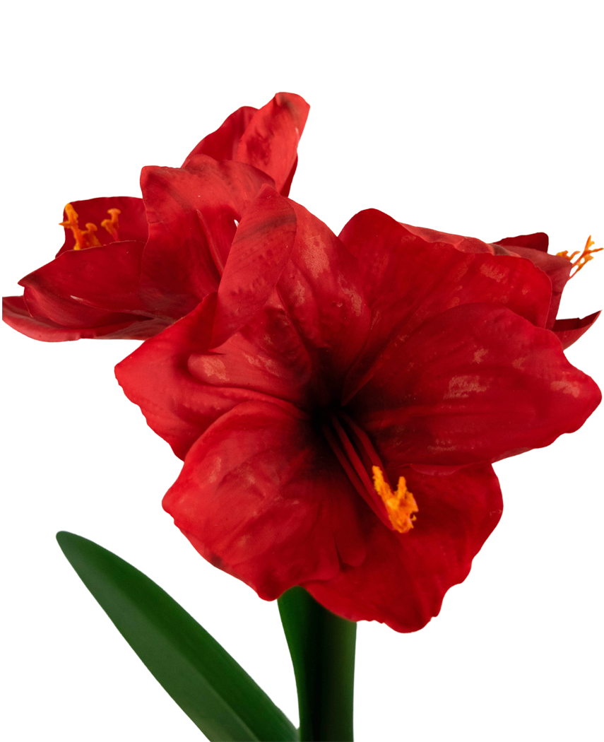 Oppdag elegansen og skjønnheten til vår kunstige Amaryllis i potte. Med Real Touch-teknologi er denne blomsten laget for å se og føles som en ekte plante, perfekt for å skape et sofistikert uttrykk i ethvert rom. Blomsten leveres ferdig i potten som avbildet, og er derfor ferdig til å plasseres direkte i ditt interiør. Om du ønsker kan du også sette blomsten i en annen dekorativ krukke.