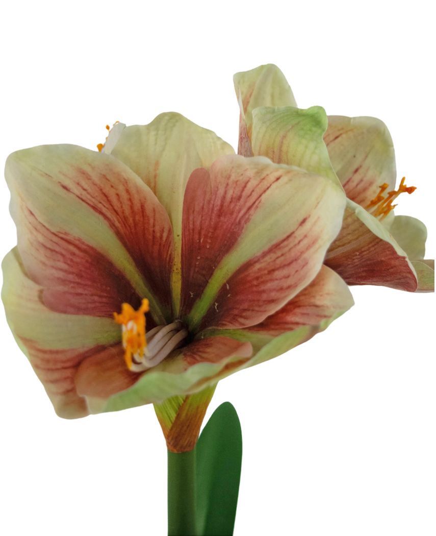 Oppdag elegansen og skjønnheten til vår kunstige Amaryllis i potte. Med Real Touch-teknologi er denne blomsten laget for å se og føles som en ekte plante, perfekt for å skape et sofistikert uttrykk i ethvert rom. Blomsten leveres ferdig i potten som avbildet, og er derfor ferdig til å plasseres direkte i ditt interiør. Om du ønsker kan du også sette blomsten i en annen dekorativ krukke.