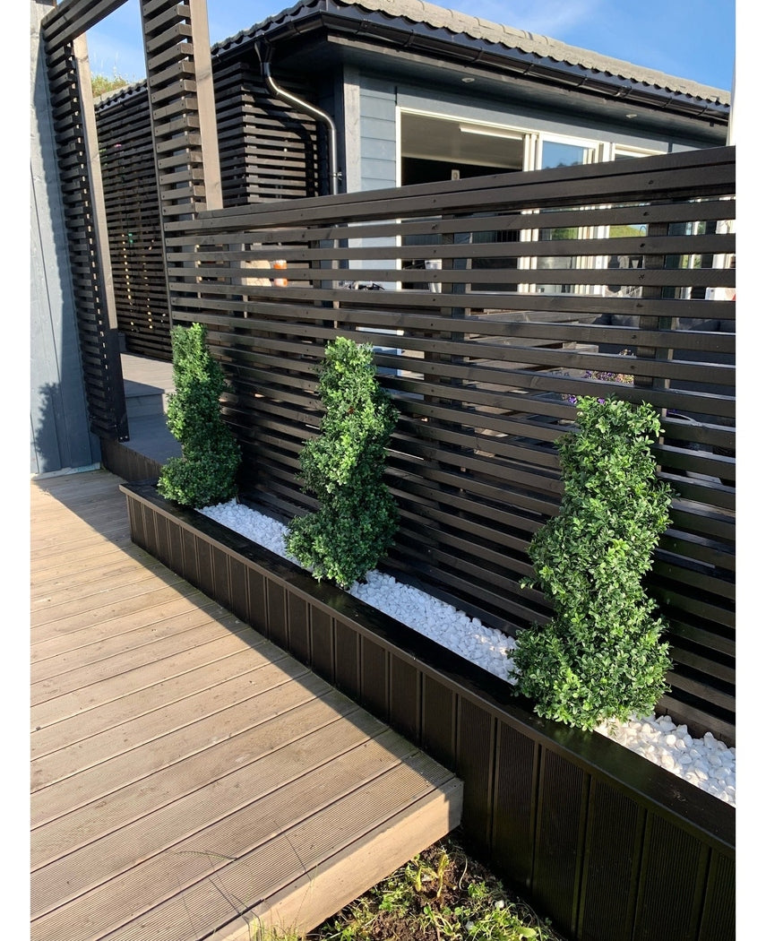 Våre Kunstige buksbom med navnet Romerstil er en buksbom familie hvor du finner 6 ulike buksbom i flere størrelser. Her presenteres en av våre Kunstig buksbom Spiraler i Romerstil, den er 90cm høy, finnes også i 90cm. Den har et tett og unikt bladverk i en dyp og nordisk grønnfarge og er litt av et blikkfang med sin flotte spiral form. Rundt om vil du se noen litt lysere blader som er der for å simulere ny vekst. Stammen på alle våre kunstige buksbom Romerstil er ekte, den kommer støpt nedi en standard plastpotte for...