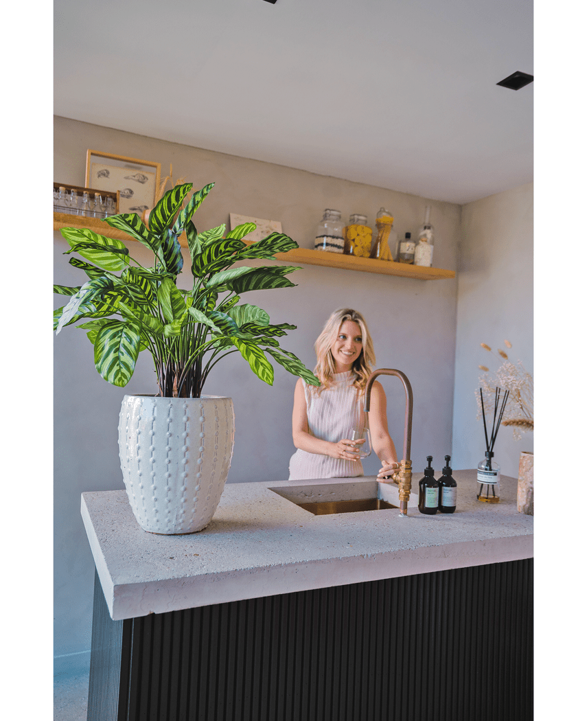 Ambiplants' kunstige planter kan knapt skilles fra den ekte varen. Kolleksjonen vår er designet internt, og vi bruker kun polyester av høy kvalitet for å gi plantene et så realistisk utseende som mulig.