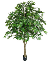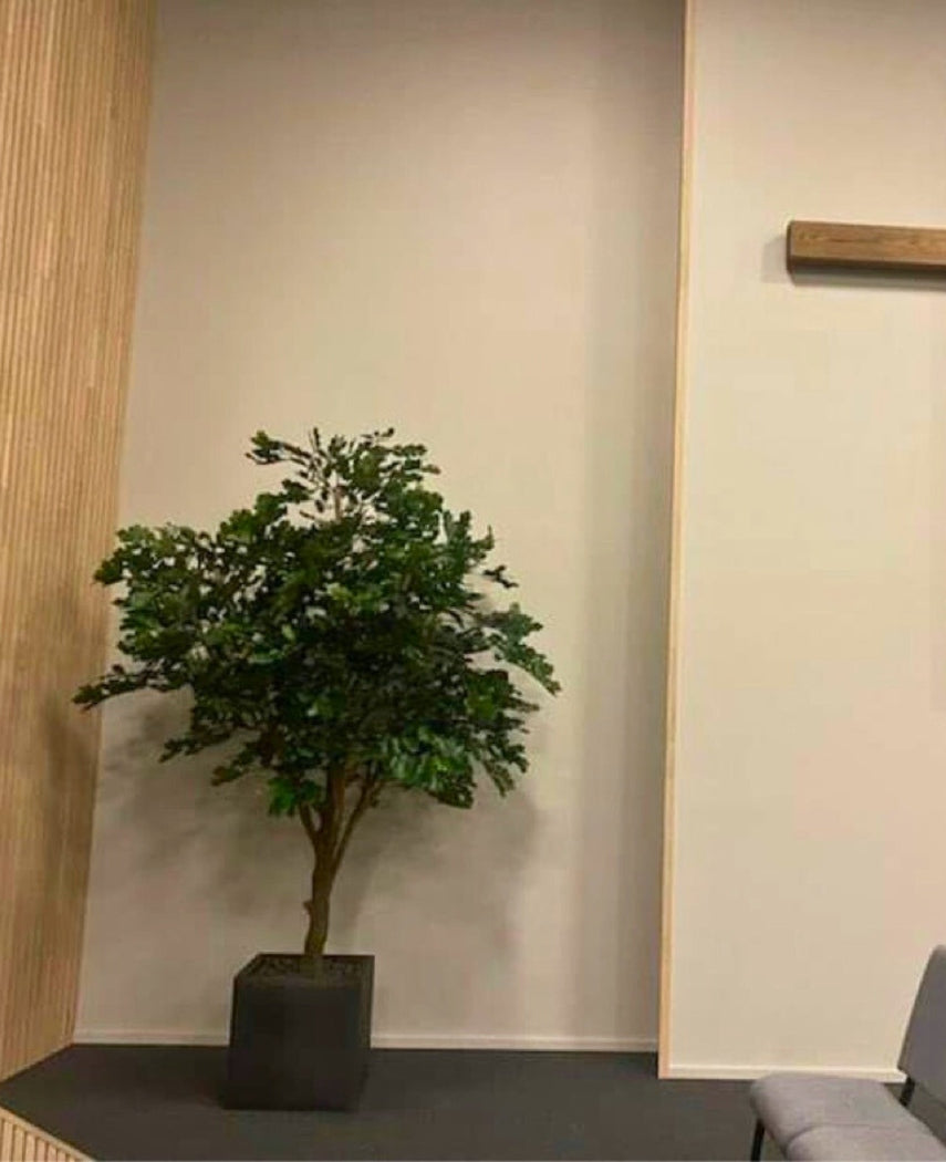 Våre kunstige trær er nesten umulig å skille fra ekte vare. Vi bruker polyester av høy kvalitet, mens stammene er laget av ekte tre, noe som skaper et veldig naturlig utseende. Er du fortsatt i tvil om kvaliteten? Da er du velkommen til å besøke utstillingslokalet vårt for å se dem selv!