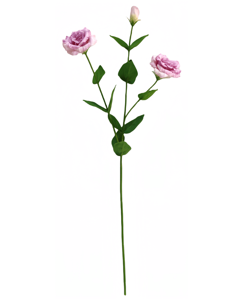Eustoma, også kjent som Lisianthus eller Texas Bluebell, er en vakker blomst som er kjent for sin delikate og elegante utseende. Eustoma kommer i en rekke farger, inkludert hvit, rosa, lilla, blå og sjeldnere varianter som kan ha grønnaktige toner. Bladene til Eustoma-planten er smale og langstrakte. De kan variere i farge, fra lys grønn til mørkere nyanser.