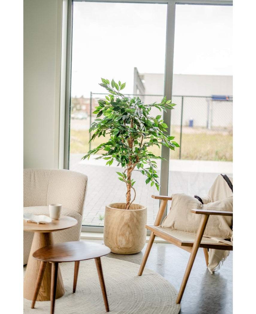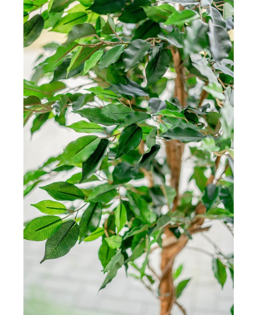 Våre kunstige trær er nesten umulig å skille fra ekte vare. Vi bruker polyester av høy kvalitet, mens stammene er laget av ekte tre, noe som skaper et veldig naturlig utseende. Er du fortsatt i tvil om kvaliteten? Da er du velkommen til å besøke utstillingslokalet vårt for å se dem selv!