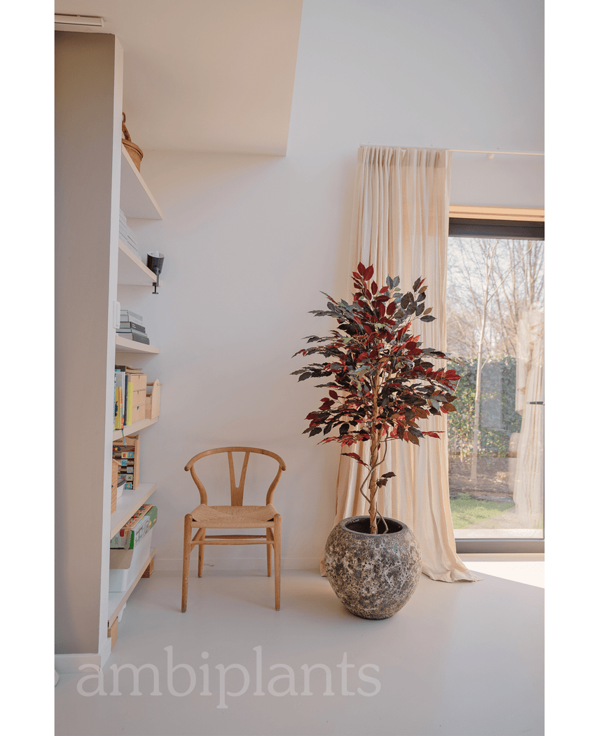 KUNSTIG FAT FIKUS BURGUNDER 150CM
