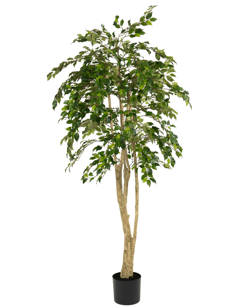 Våre kunstige trær er nesten umulig å skille fra ekte vare. Vi bruker polyester av høy kvalitet, mens stammene er laget av ekte tre, noe som skaper et veldig naturlig utseende. Er du fortsatt i tvil om kvaliteten? Da er du velkommen til å besøke utstillingslokalet vårt for å se dem selv!