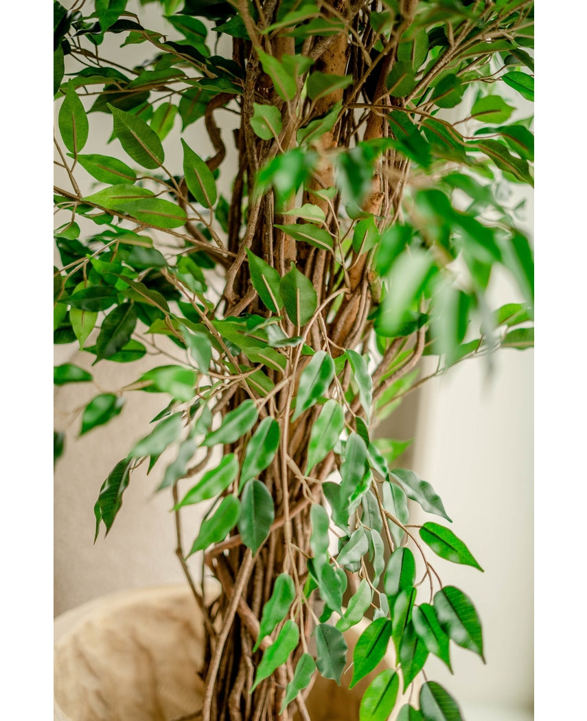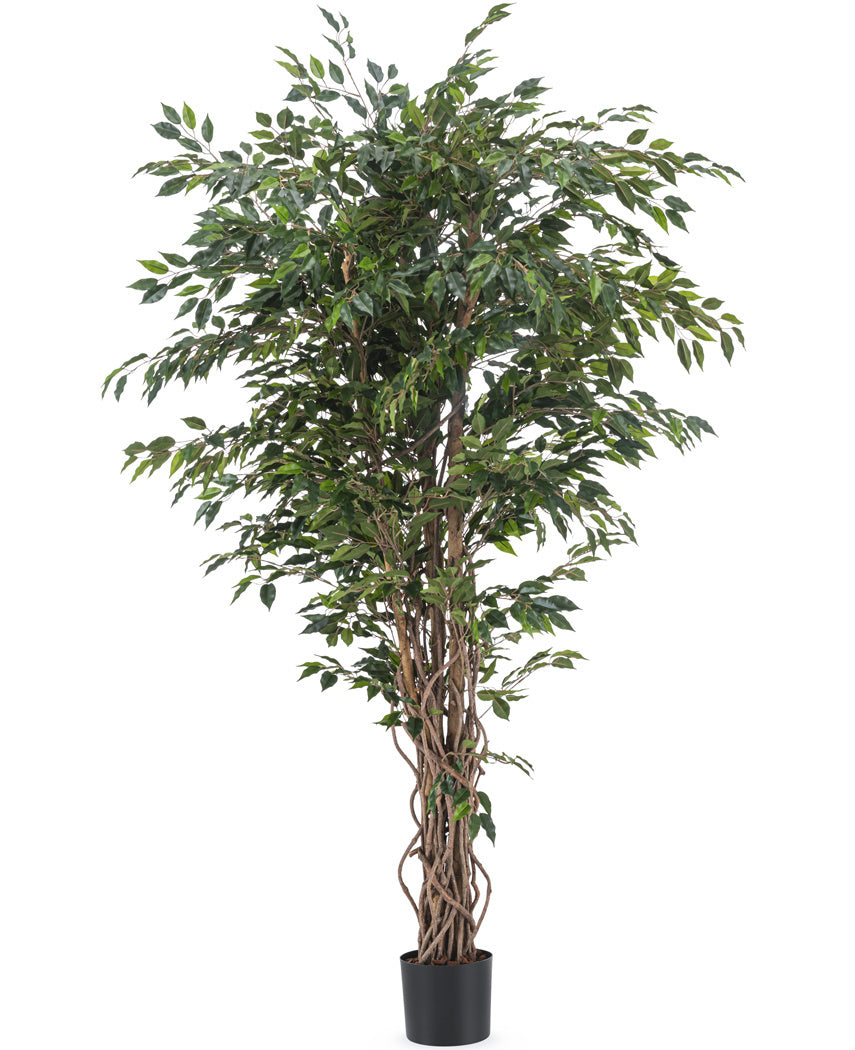 Pynt opp hjemmet eller kontoret med en kunstig plante som denne kunstige fikusen, den kommer i en standard plast potte som gjør det enkelt for deg og plassere den i en potte, den er 180cm høy så den kan enten plasseres i en bred lav potte eller du kan selvfølgelig bygge den opp i en høyere potte om det er ønskelig. Den har en ekte flott stamme som er sammensatt av mange små stammer og bladene begynner langt nede på stammen og bygger seg ut oppover til en stor fyldig ''busk'' som danner er diameter på hele...