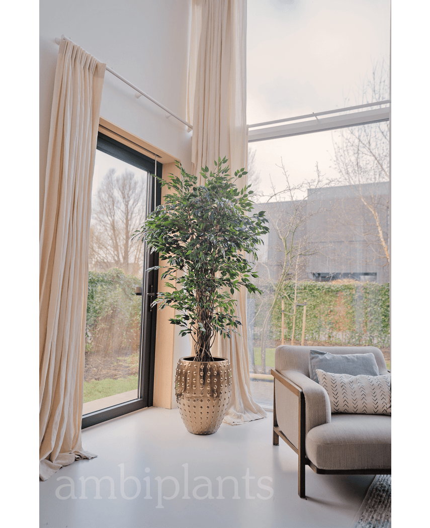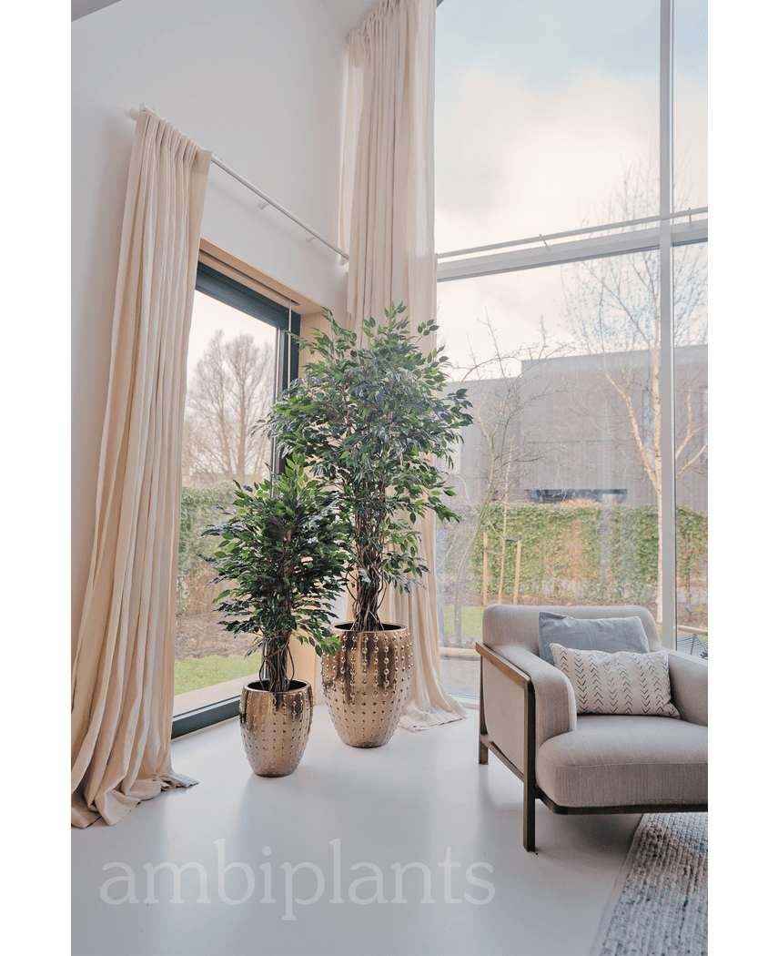 Våre kunstige planter kan nesten ikke skilles fra ekte planter. Vi bruker polyester av høy kvalitet som ikke falmer, og stilkene er laget av ekte tre, noe som gjør at de ser veldig naturlige ut. Hvis du fortsatt er i tvil om kvaliteten, inviterer vi deg til å besøke showroom vår!