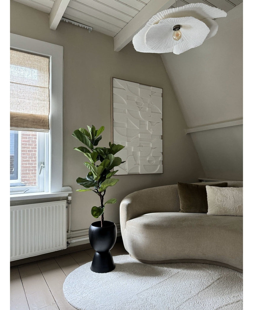 Vår kunstige fiolinfiken her er 125cm, dette passer utmerket i hjemmet, på kontoret eller i restauranten. Det er veldig naturtro med sine store grønne blader i enestående kvalitet og med en naturlig stamme. Dette sammen gjør at dette kunstige treet er en stor favoritt blant våre kunder. Planten har fått navnet sitt fra de fiolinformede bladene. Vår falske fiolinfiken har en rik og frisk grønnfarge. Denne er det perfekte valget, den vil passe inn der du setter den og den vil løfte rommet den står i.