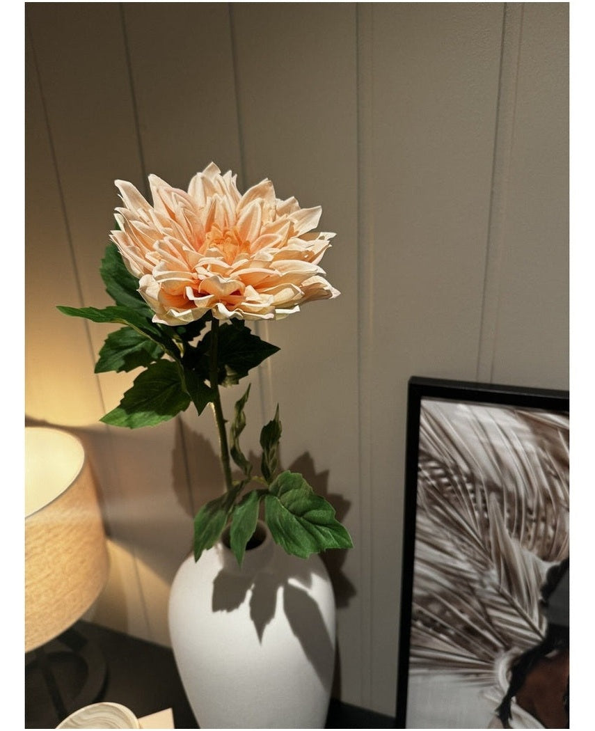 Disse Georginene kommer i flere flotte farger. Blomstene har diameter 13cm og stilken er 70cm lang, den kan klippes eller bøyes om du ønsker den kortere til vase eller bukett.