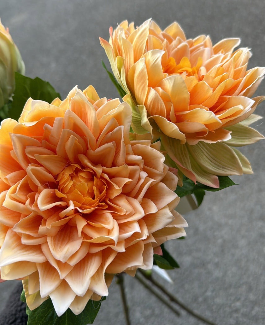 Disse Georginene kommer i flere flotte farger. Blomstene har diameter 13cm og stilken er 70cm lang, den kan klippes eller bøyes om du ønsker den kortere til vase eller bukett.