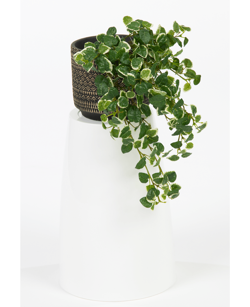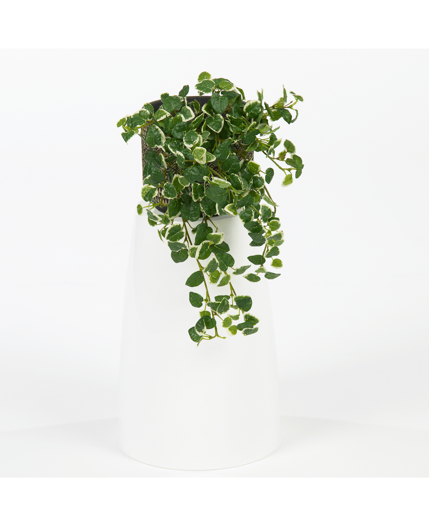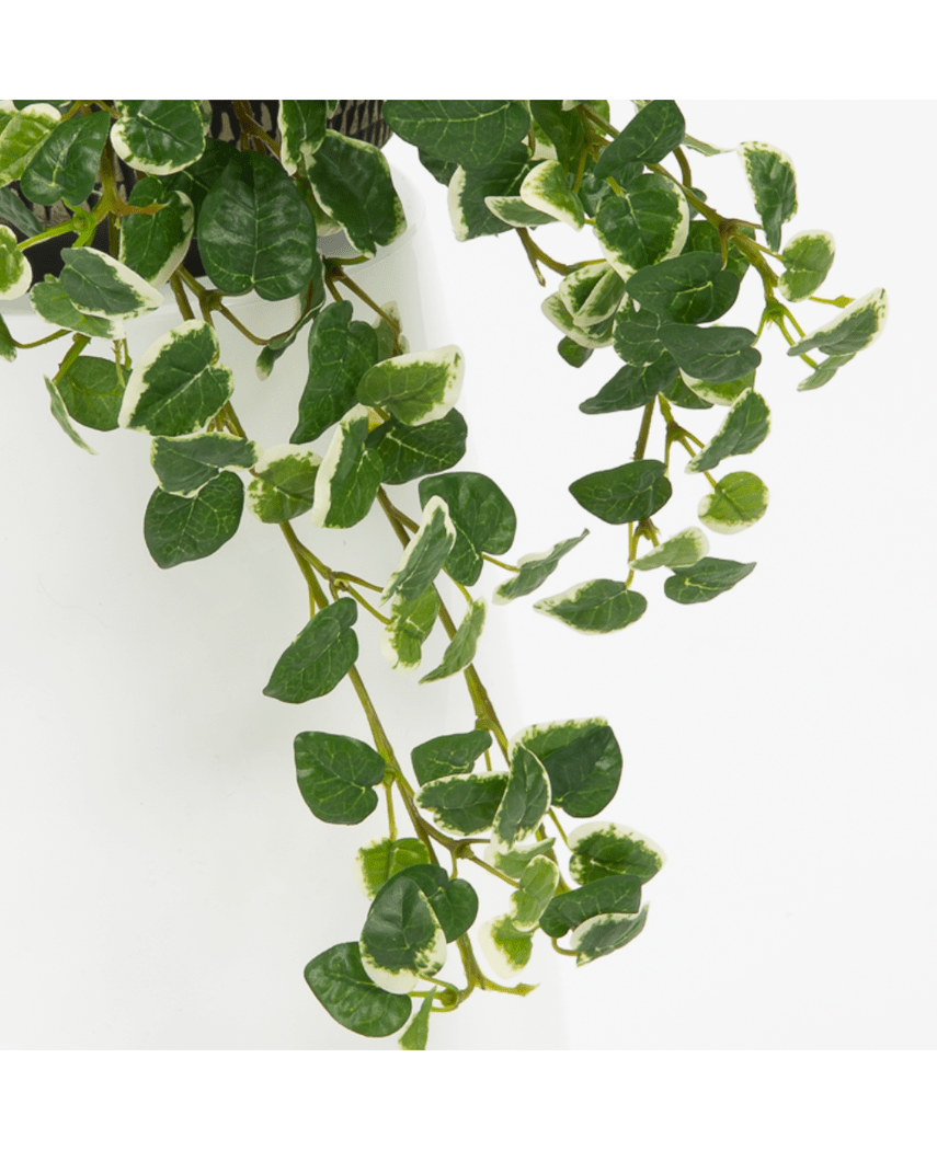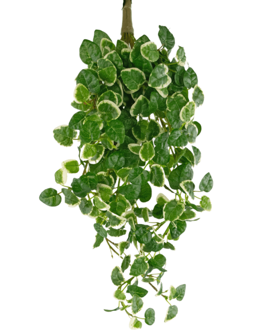 Kunstige hengeplanter er flotte og lette planter. Putt stilken i en valgfri potte med litt oasis i bunn. Topp med ønsket topping, dekorbark eller dekorstein.