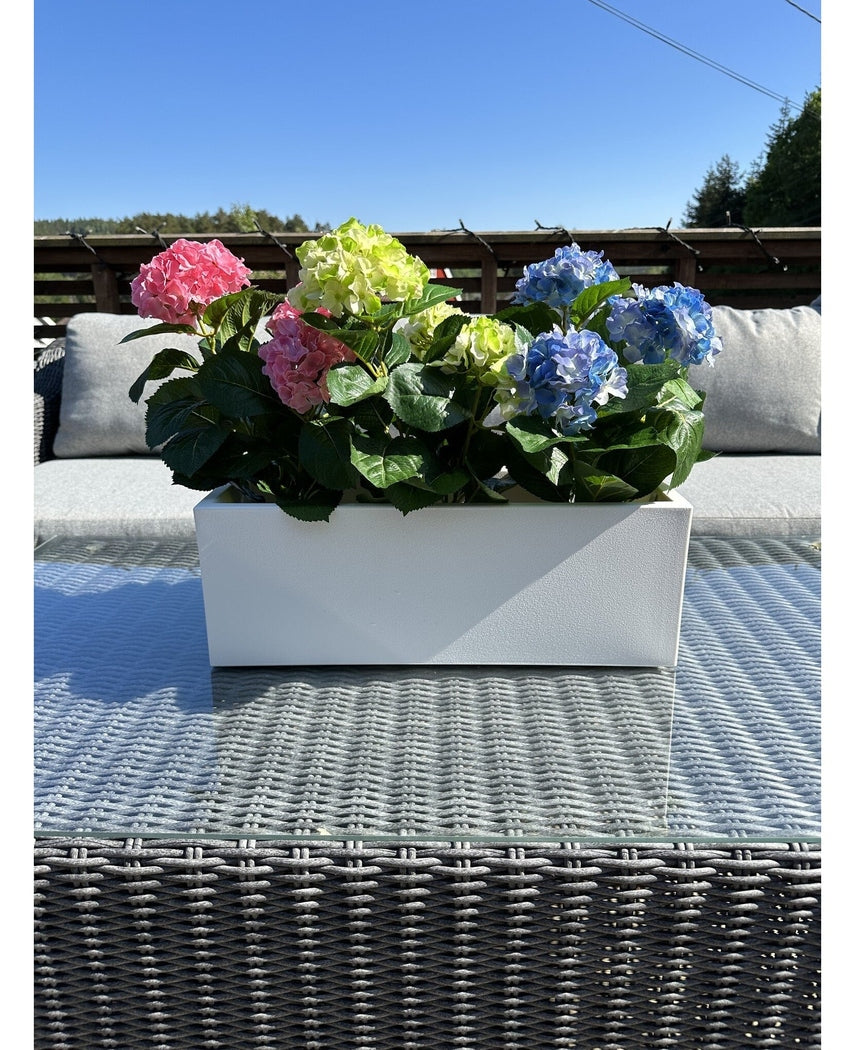 En kunstig hortensia fra ambiplants er flott som gave til noen andre eller også til deg selv. Vi har flere størrelser og farger. Flotte fargerike kunstige planter som er UV og derfor tåler sollys uten å bli blasse i fargen etter en sesong.