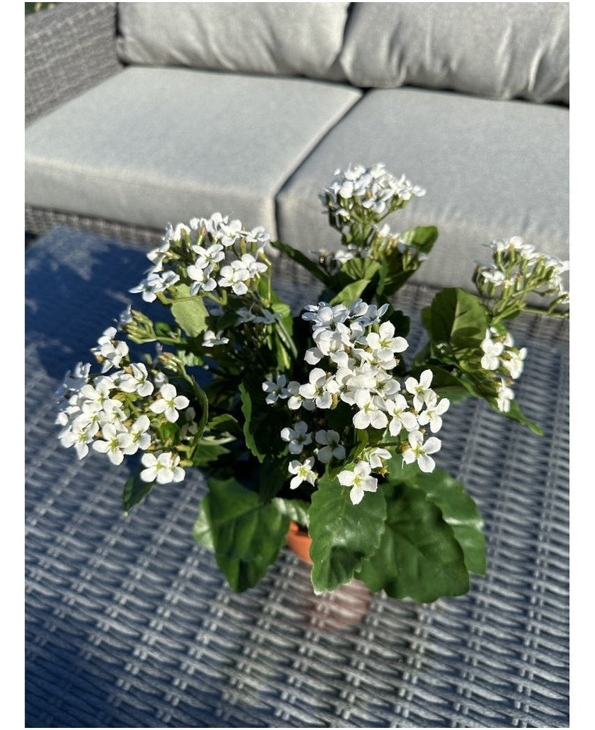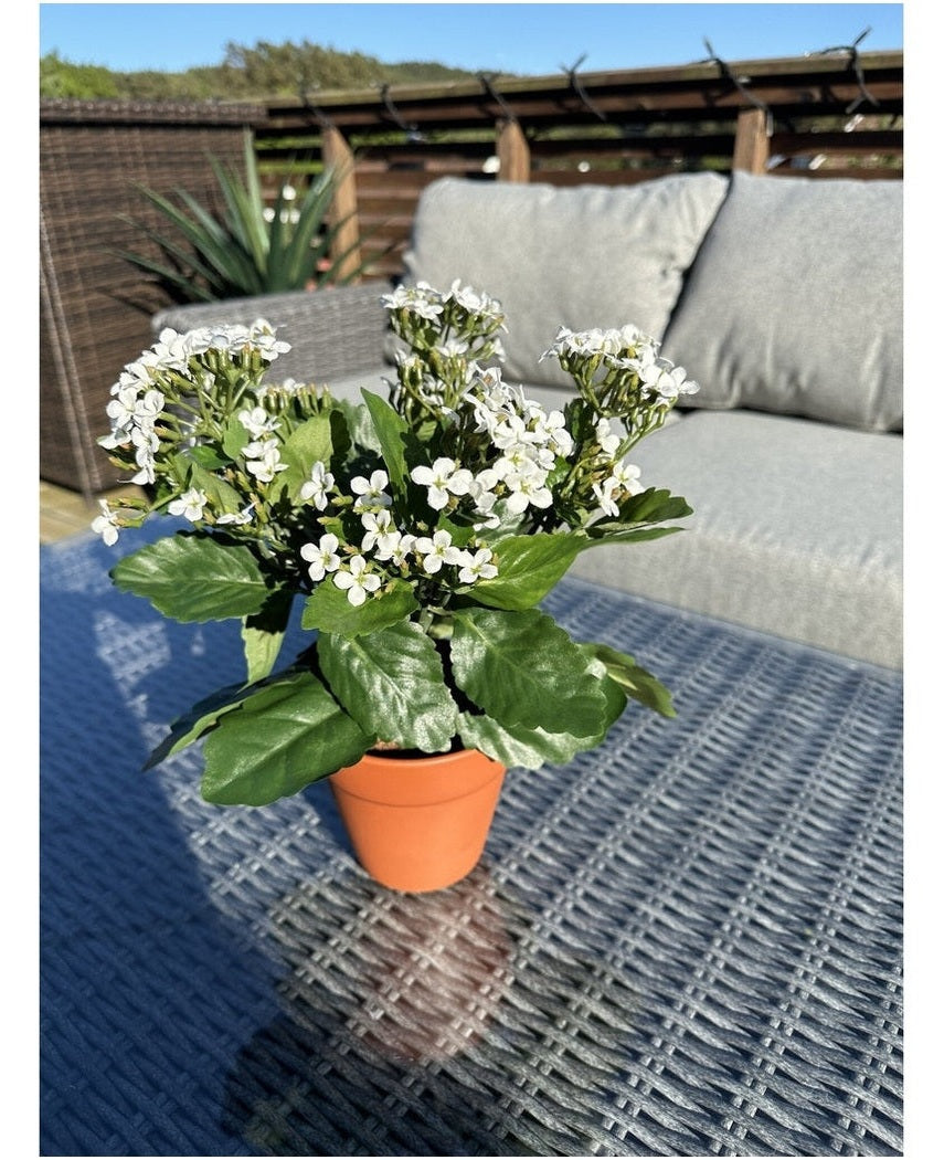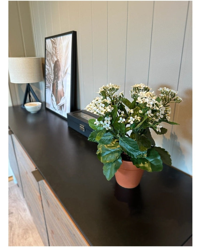 Enten det er vinter eller midt på sommeren, vil disse vakre kunstige blomstene alltid være strålende og gi en hyggelig atmosfære til interiøret ditt. Skap et avslappende miljø med mye grønt og farger rundt deg! Vitenskapelig forskning har bevist at blomster i omgivelsene dine bidrar til en behagelig og beroligende følelse.
