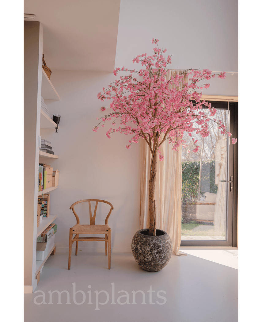 Et blikkfang som du kan nyte utsikten av i lang tid. Dette kunstige kirsebærtreet er stort og flott. Det har en naturlig stamme med flotte grener du kan bøye og forme etter ønske.