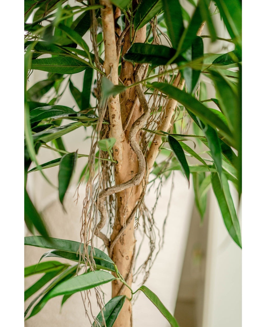 Våre kunstige trær er nesten umulig å skille fra ekte vare. Vi bruker polyester av høy kvalitet, mens stammene er laget av ekte tre, noe som skaper et veldig naturlig utseende. Er du fortsatt i tvil om kvaliteten? Da er du velkommen til å besøke utstillingslokalet vårt for å se dem selv!