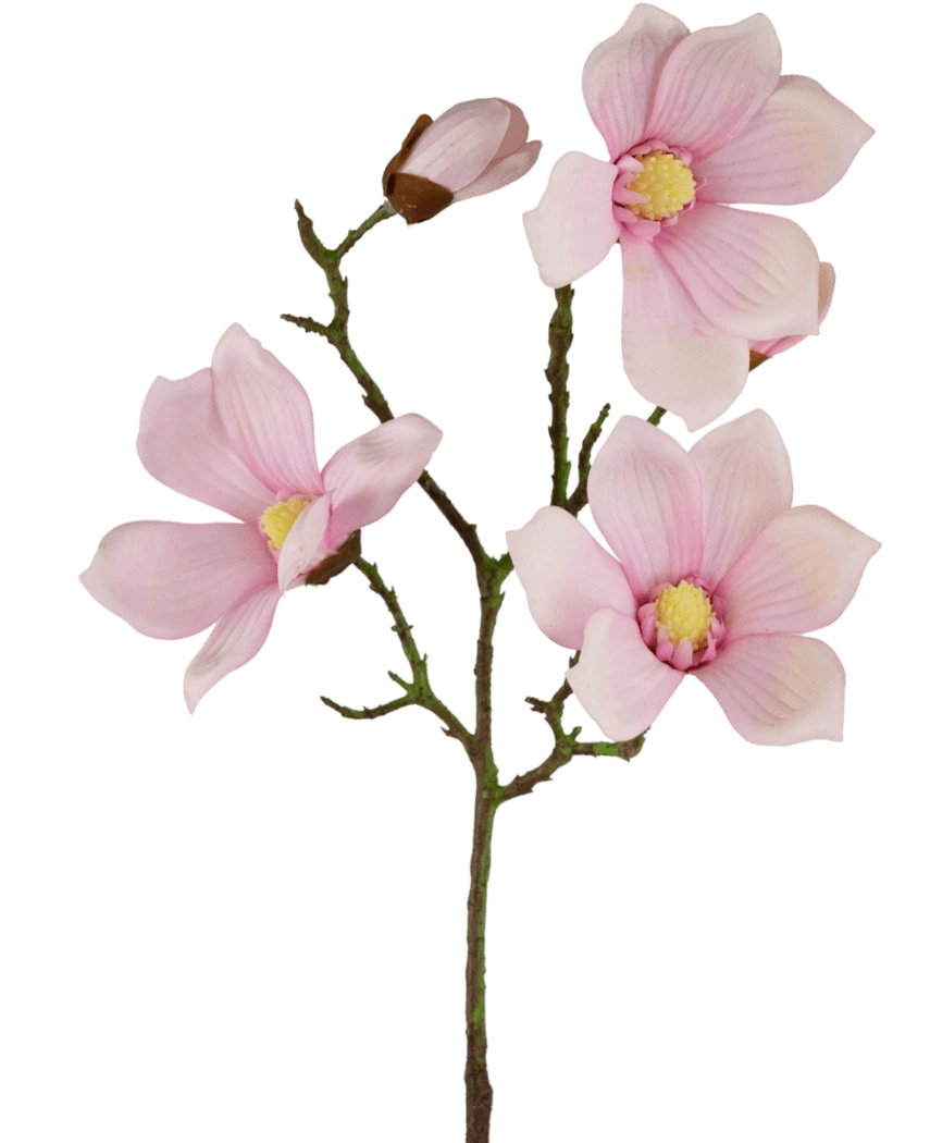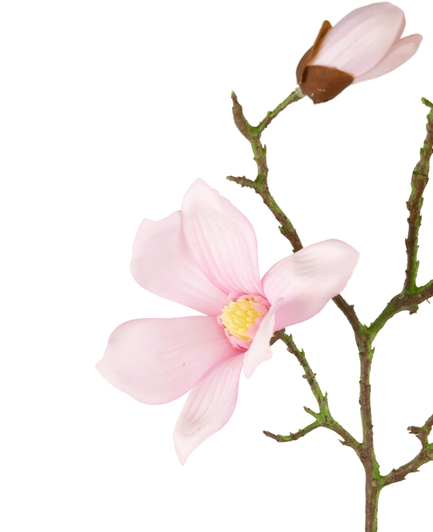 Kunstig Magnolia gren Real Touch Rosa er et nydelig uttrykk for delikat skjønnhet og gir en romantisk atmosfære til ditt hjem. Real Touch teknologien gjør denne kunstige magnoliagrenen bemerkelsesverdig realistisk både i utseende og følelse. Hver blomst og blad er nøye utformet for å gjenskape den ynde og eleganse som er kjennetegnende for ekte magnoliagrener.