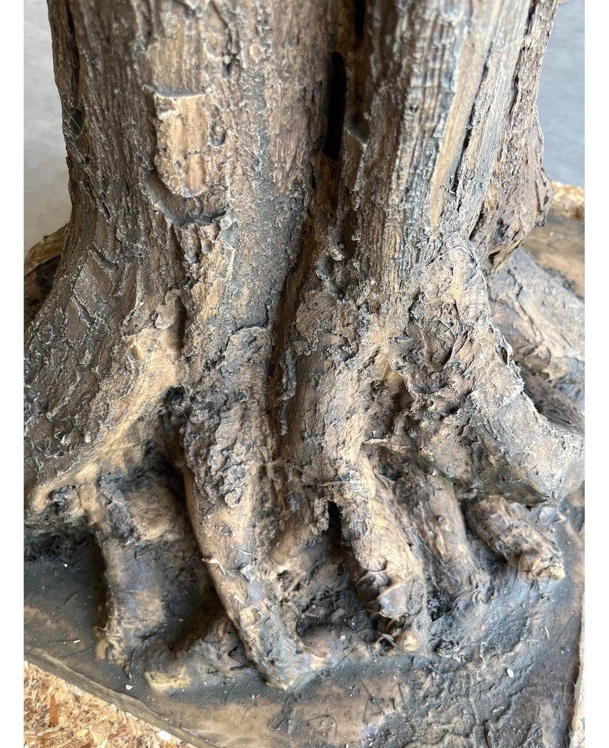 Dette oliventreet er noe helt spesielt, helt unikt og et skikkelig blikkfang. Stammen ser naturlig ut i en dyp brunfarge som er laget for hånd av våre spesialister. Bladene og krona strekker seg ut fra flere mindre stammer som spriker opp fra hovedstammen.