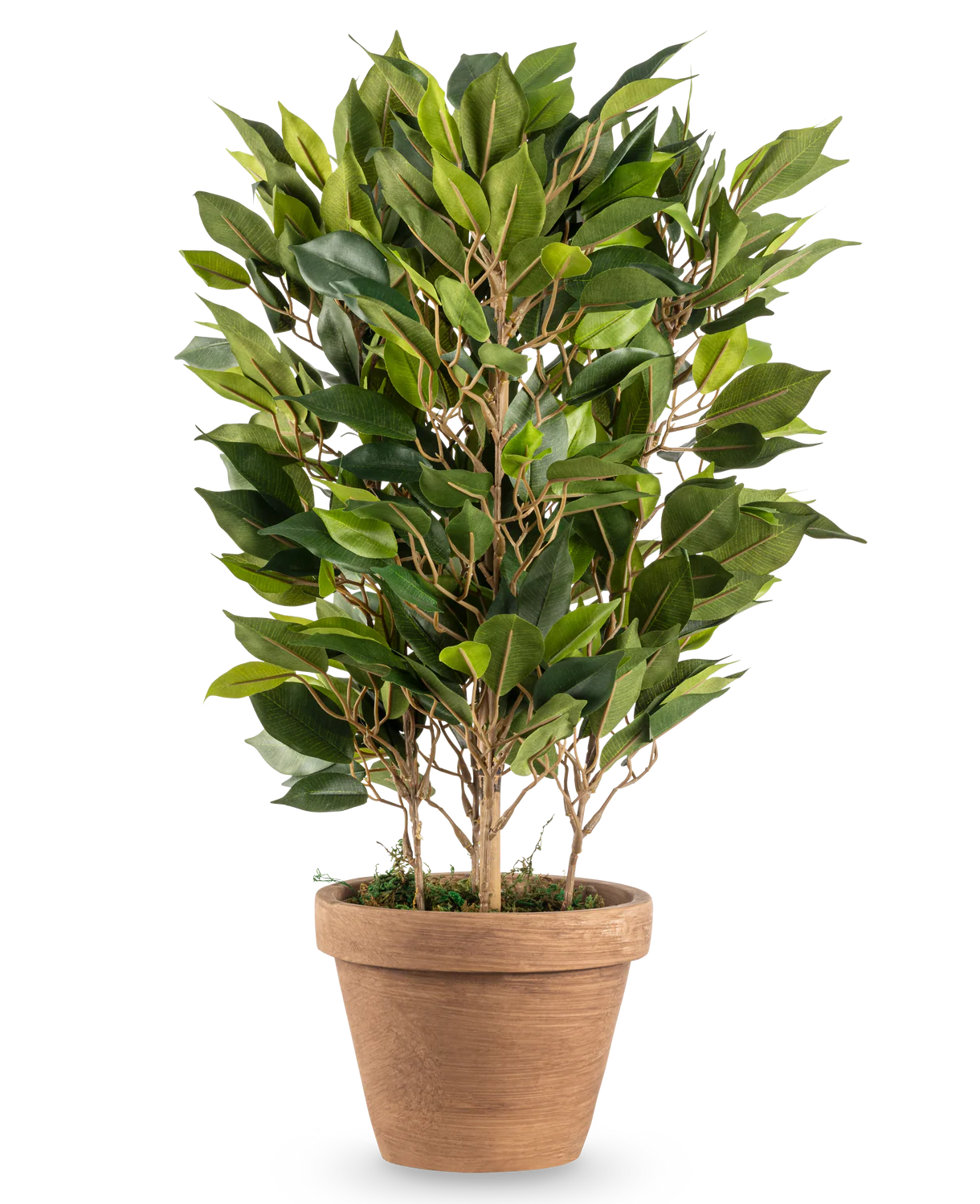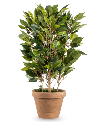 En nydelig plante på høyde 45-55cm litt etter hvordan du ønsker å brette stilkene. Ferdig plantet Fikus i stabil Terra Cotta potte med god vekt. Det er dekorert med mose i potten for et elegant resultat.