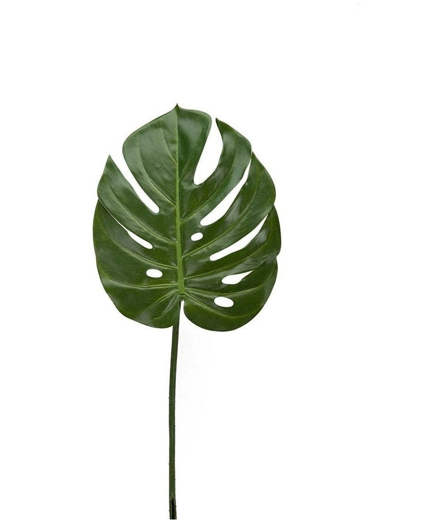 Den kunstige Monstera har en nydelig lys grønn farge på de elegante lange bladene som passer perftekt alene eller til noe grønt i din bukett.