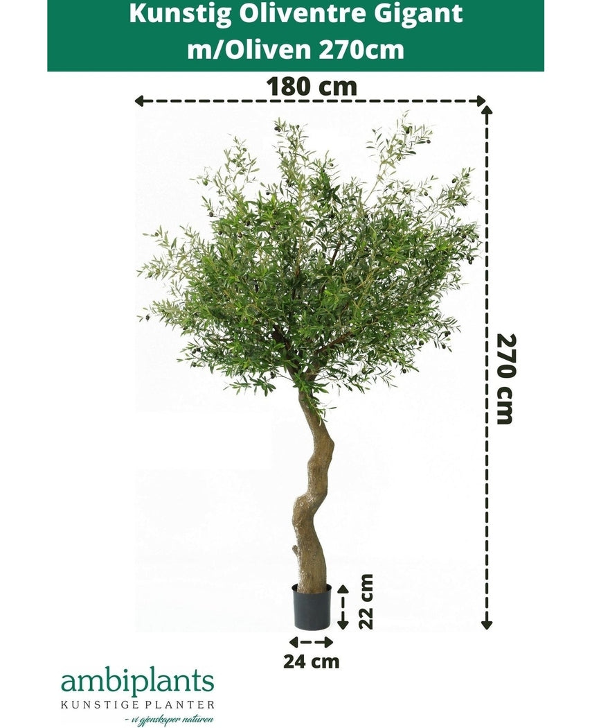 Kunstig Oliventre Gigant m/Oliven 270cm
