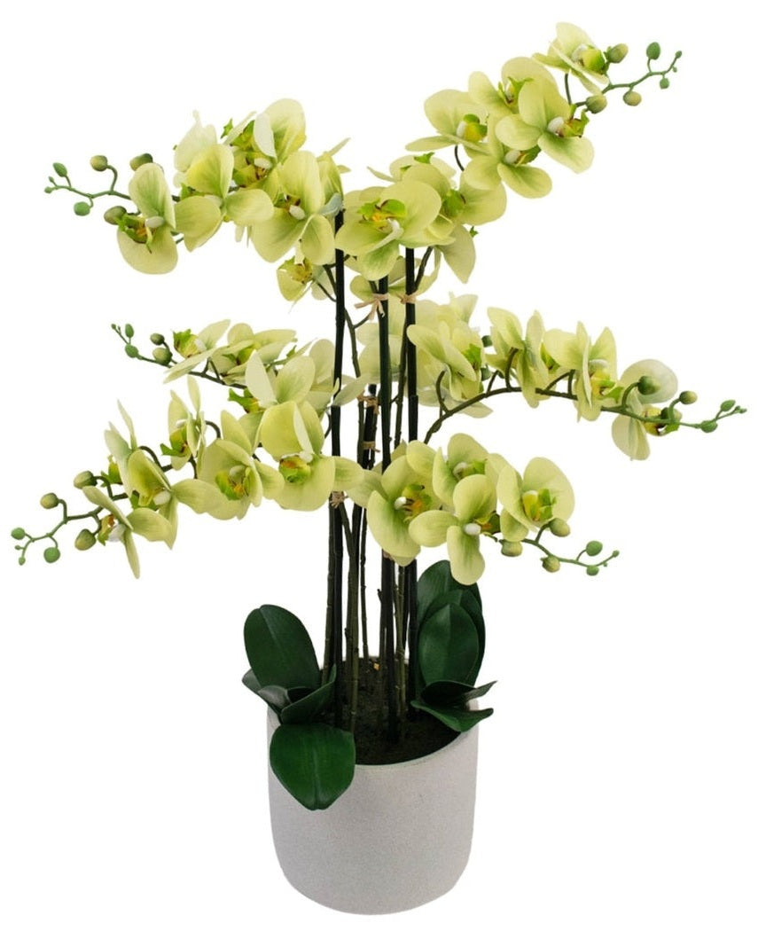 Våre kunstige orkideer er nesten umulig å skille fra de ekte. Vi bruker polyester av høy kvalitet. Er du fortsatt i tvil om kvaliteten? Så besøk gjerne butikken vår for å se dem selv!