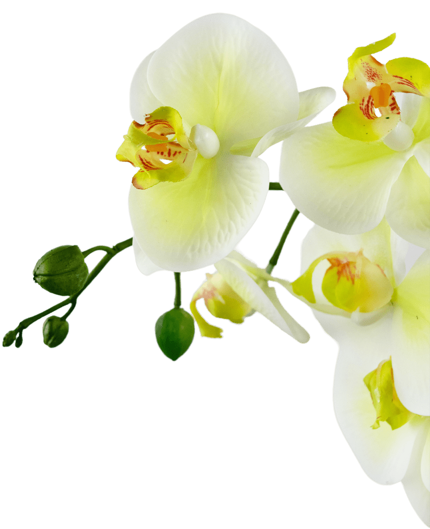 Våre kunstige orkideer er nesten umulig å skille fra de ekte. Vi bruker polyester av høy kvalitet. Er du fortsatt i tvil om kvaliteten? Så besøk gjerne butikken vår for å se dem selv!