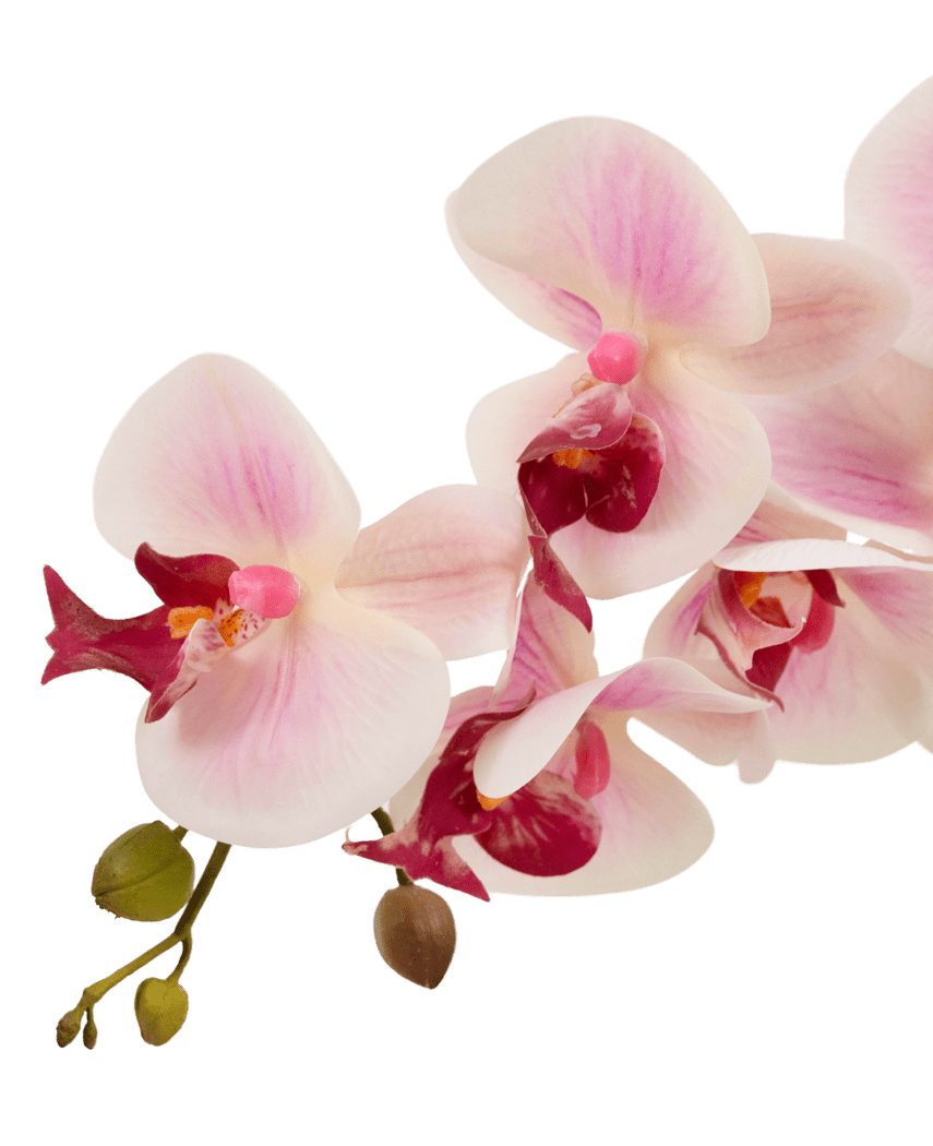 Våre kunstige orkideer er nesten umulig å skille fra de ekte. Vi bruker polyester av høy kvalitet. Er du fortsatt i tvil om kvaliteten? Så besøk gjerne butikken vår for å se dem selv!