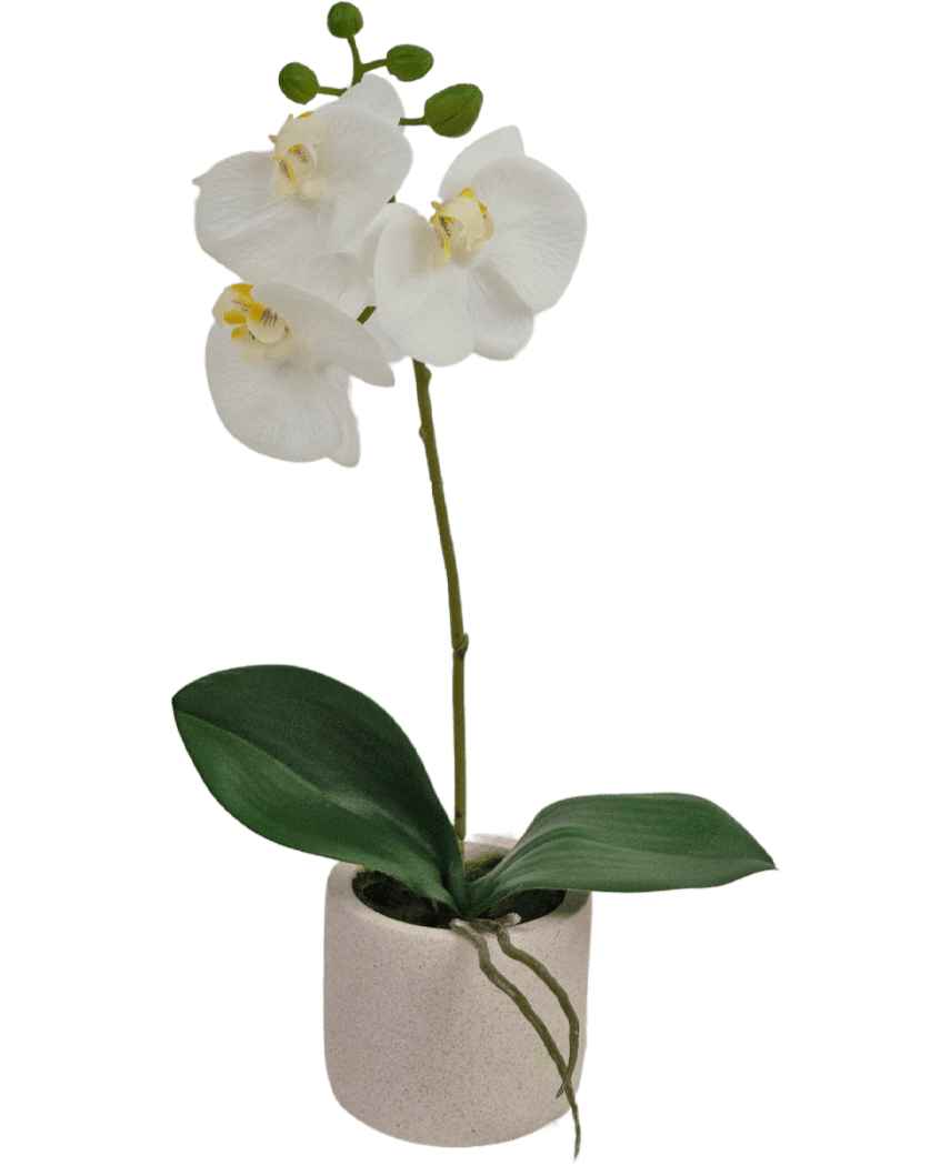 Våre kunstige orkideer er nesten umulig å skille fra de ekte. Vi bruker polyester av høy kvalitet. Er du fortsatt i tvil om kvaliteten? Så besøk gjerne butikken vår for å se dem selv!