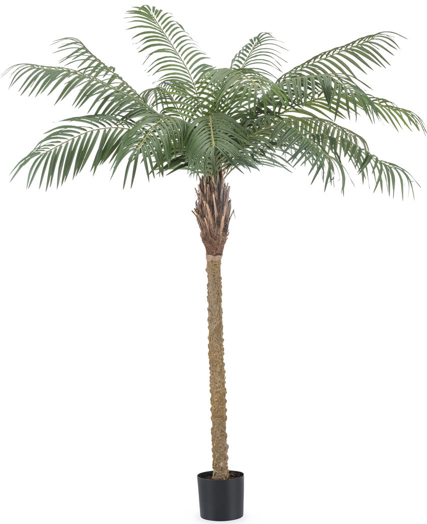 Få den tropiske atmosfæren inne, velg vår Kunstige Phoenix Palme de luxe, med sitt imponerende utseende og en ekte stamme på hele 180cm. Stammen er bevart, slik at den er akkurat som den skal være. Vi har lagt mye arbeid i å gjøre de flotte palmebladene best mulig, de er i god kvalitet og nøye detaljerte. Dette er det riktige valget for og gi et innendørs svømmebasseng, kontorlokale, kjøpesenter eller badstu en tropisk edge. Lukk øynene dine og med litt fantasi kan du føle den hvite sanden mellom tærne og solens varme i ansiktet.