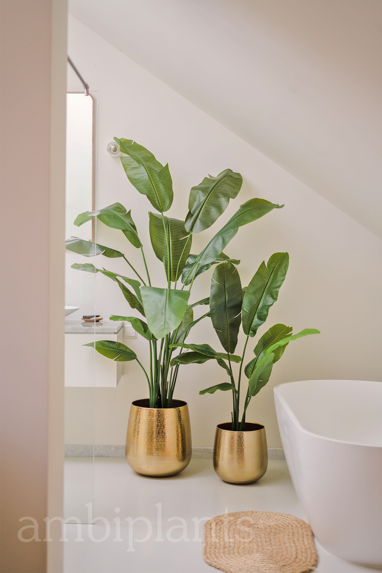Våre kunstige Strelitzia planter er flotte grønne tilskudd i hjem, hytter og til offentlige bygg. En kunstig plante holder fargen og utseendet. Den vokser ei heller ikke, derfor tilbyr vi et bredt utvalg av høyder og størrelser. Slik at du kan velge passende størrelse på din falske strelitzia.