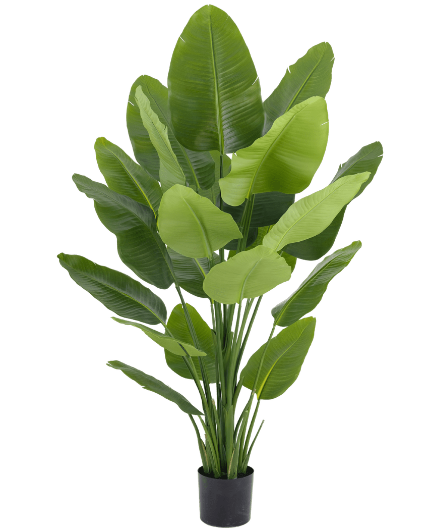 Gi hjemmet eller arbeidsplassen et friskt, grønt løft med denne flotte kunstige strelitziaen. Planten har en perfekt høyde på 180cm og passer perfekt i hjørner, ved sofagrupper eller som dekor ved inngangspartiet. Med sine store frodige blader tilfører den en tropisk og stilfull atmosfære til ethvert rom.