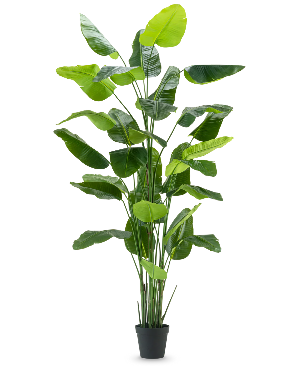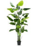 Få ekte tropisk stemning med denne imponerende kunstige Strelitziaen på hele 300cm! Planten er som skapt for å være et majestetisk blikkfang i rommet, enten det er i stua, på kontoret, i en resepsjon eller en hotellobby. Med sine 30 store, frodige blader og en diameter på 150 til 190cm avhengig av hvordan du bretter og former den, fyller den rommet med eksotisk eleganse.