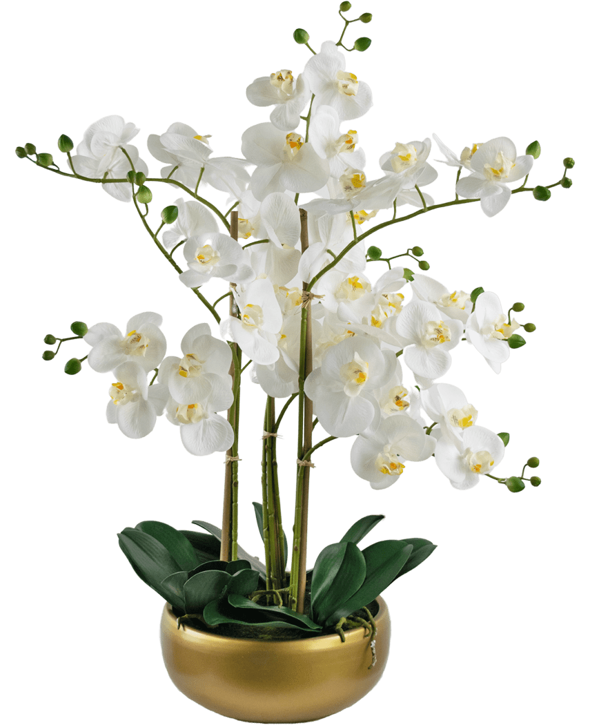 Kunstig Praktfull Orkidé Real Touch i Gullpotte 65cm