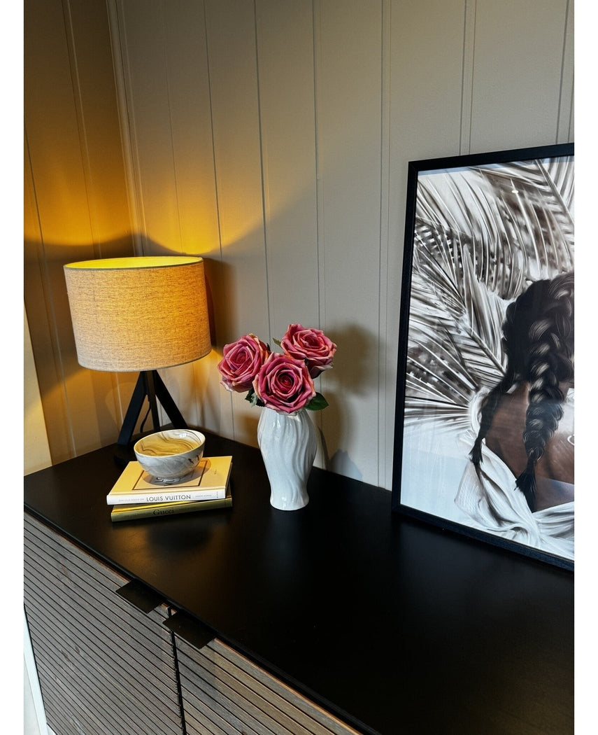 Real Touch blomsterbukett av tre roser som både ser og kjennes naturtro. Å legge til en touch av romantikk og friskhet i ditt hjem har aldri vært enklere enn med Ambiplants sin Kunstig Rosebukett Real Touch Gammelrosa 30cm. Denne kunstige rosebuketten er et mesterverk av kvalitet, naturtro design og tidløs skjønnhet.