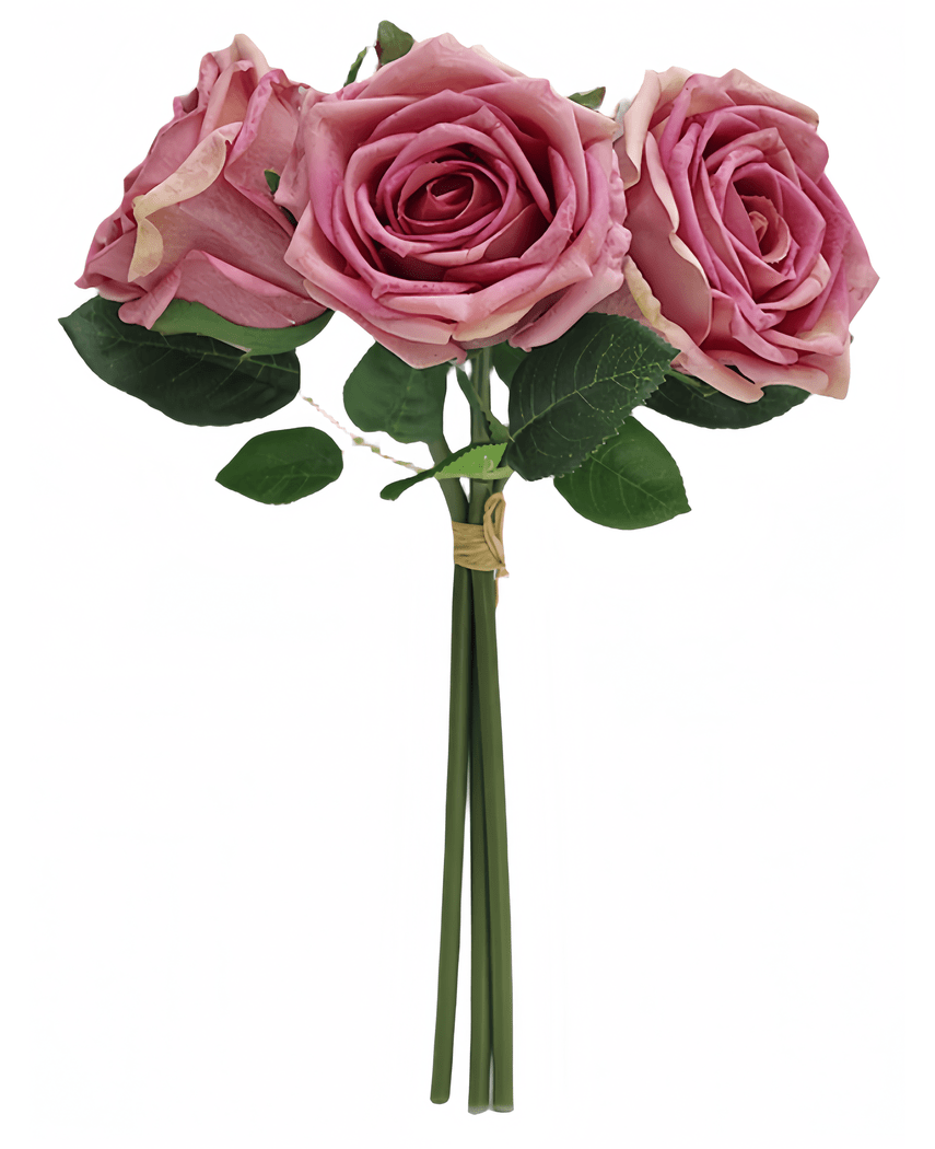 Kunstig Rosebukett Real Touch Gammelrosa 30cm - 3stk