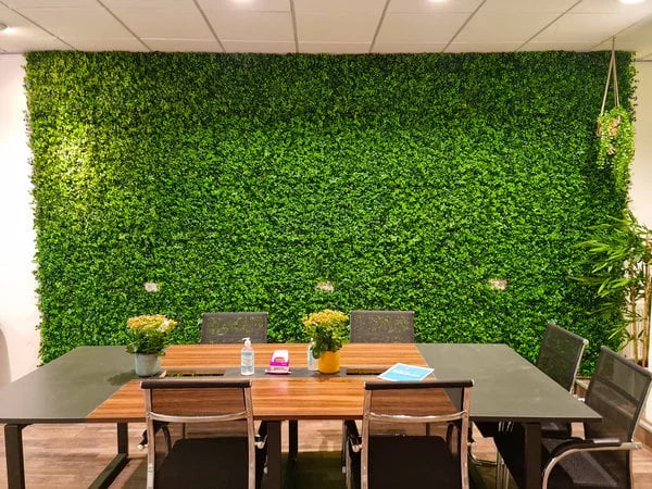 Våre kunstige plantevegger holder seg vakre i fargen hele året, både innendørs og utendørs. De skaper en avslappende atmosfære og gir øyeblikkelig et friskt utseende til ethvert rom. Grønt i omgivelsene dine skaper en beroligende følelse, uten at du trenger å tenke på vedlikehold!