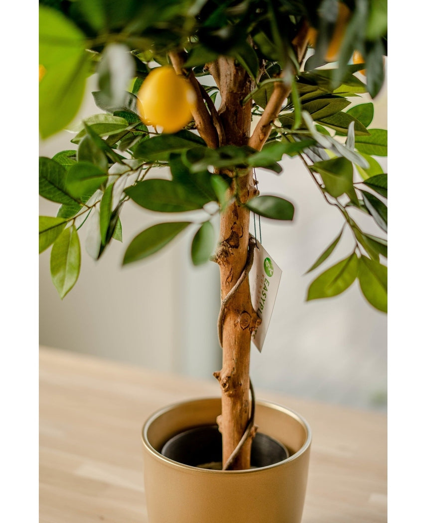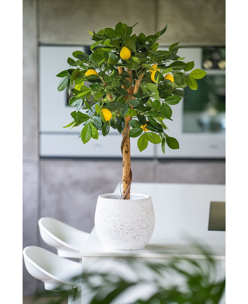 Dette kunstige sitrontreet vil være et flott eksotisk tilskudd i et hvert interiør. Eksotisk planter er veldig populære, men veldig vanskelig og få til å leve og vokse i det kalde nord. Denne kunstige varianten av et sitrontre derimot vil holde seg frisk og fin i fargene året rundt!
