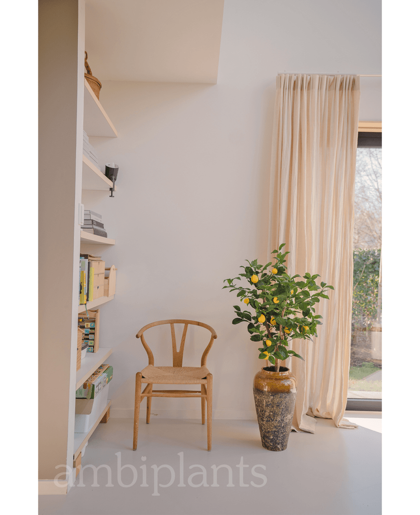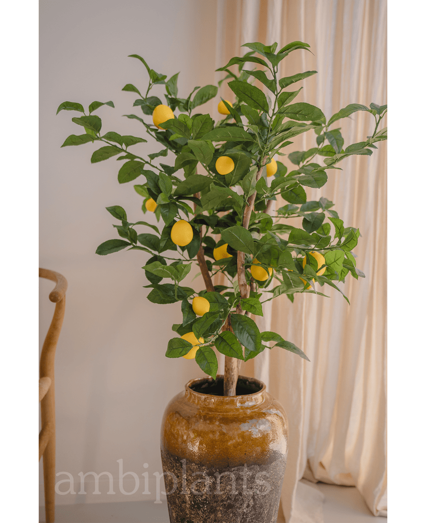 Et sitrontre gir et friskt pust til interiøret. Frukttrær er ikke alltid like lette å holde i live lenge eller å få frukt på, som kan pynte opp over lengere tid. Våre kunstige frukttrær og falske sitrontre har sitroner og frukter hele året. Bladene er nydelig grønne med detaljer som fremstår meget naturtro.