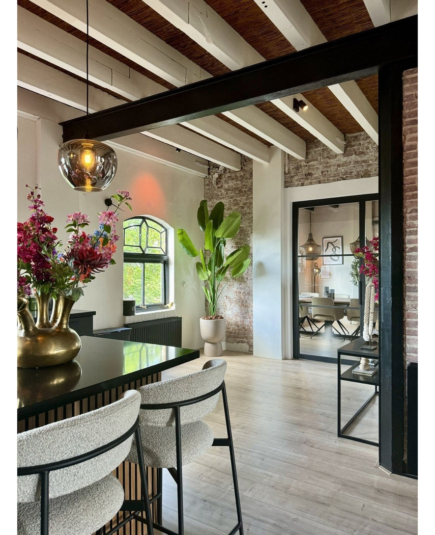 En kunstig plante som brer seg helt opp mot taket. Våre Strelitzia planter i høydene 210cm eller 240cm er perfekt for de fleste hjem som har denne høyden opp til taket. Den kunstige planten kan bøyes og brettes etter ønske.