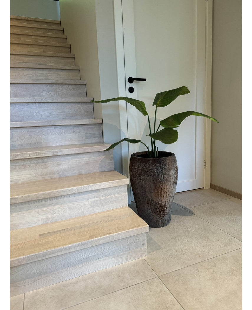 For bruk utendørs: HUSK god drenering. De ekte trestammene bør ikke stå fuktig over lengere tid. Vi anbefaler hull i potten og leca for drenering rundt tre stammene.