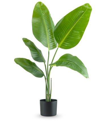En kunstig Strelitzia er en majestetisk plante med store flotte grønne blader som brer seg ut fra flere lange slanke stilker. Strelitzia planter kommer i flere størrelser og de levende vokser seg til å mest se ut som høye trær. Vi har derfor et bredt utvalg høyder på strelitzia planten, så du kan velge passende høyde for deg.